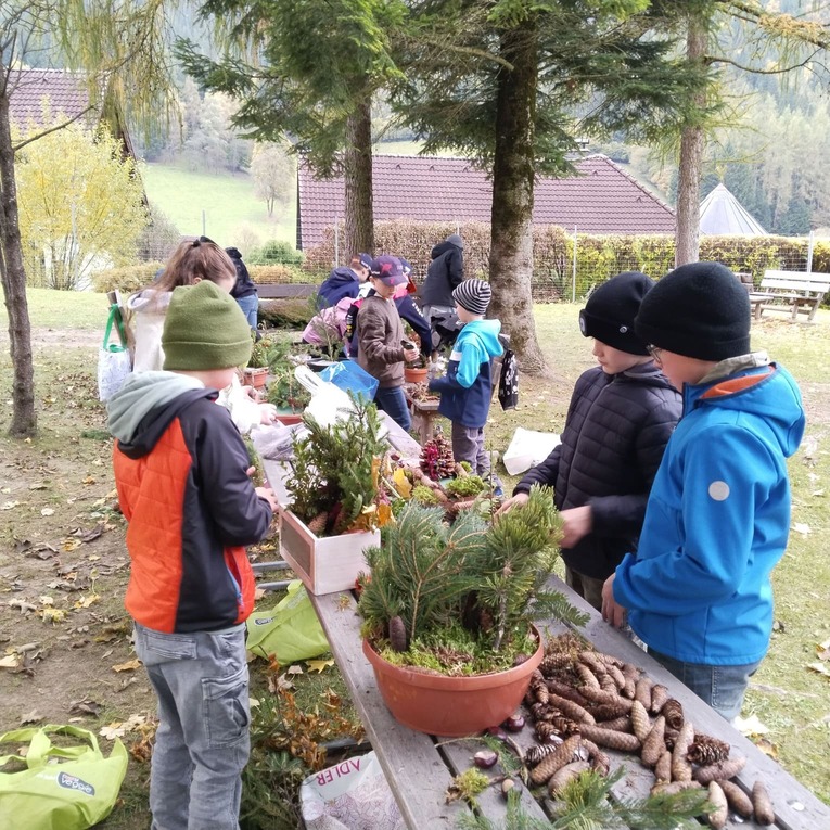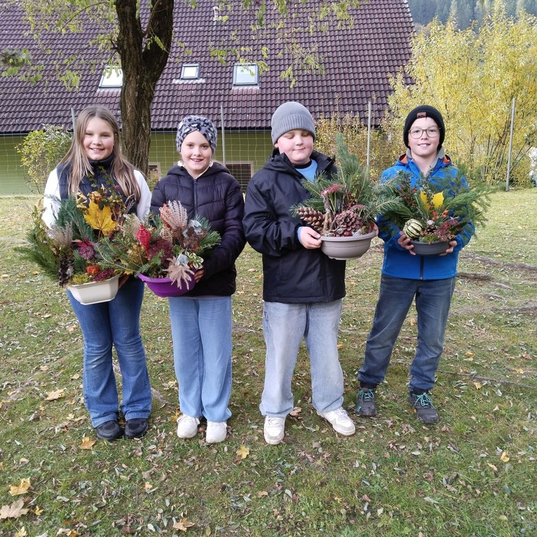 Mit Begeisterung, Kreativität und viel Freude stellten die Volksschüler der 4.a Klasse unter Anleitung ihrer Klassenlehrerin Alexandra Hartmann Allerheiligengestecke her. Jedes dieser wundervollen Gestecke ist ein Meisterwerk, in dem viel Geduld, Fingerfertigkeit und vor allem Liebe zum Detail stecken. Besonderer Dank gilt den Eltern, die das Projekt durch das Mitbringen von unzähligen Naturmaterialien, wie Zapfen, Zweigen, Kastanien, Moosen etc. enorm unterstützt und überhaupt erst möglich gemacht haben.