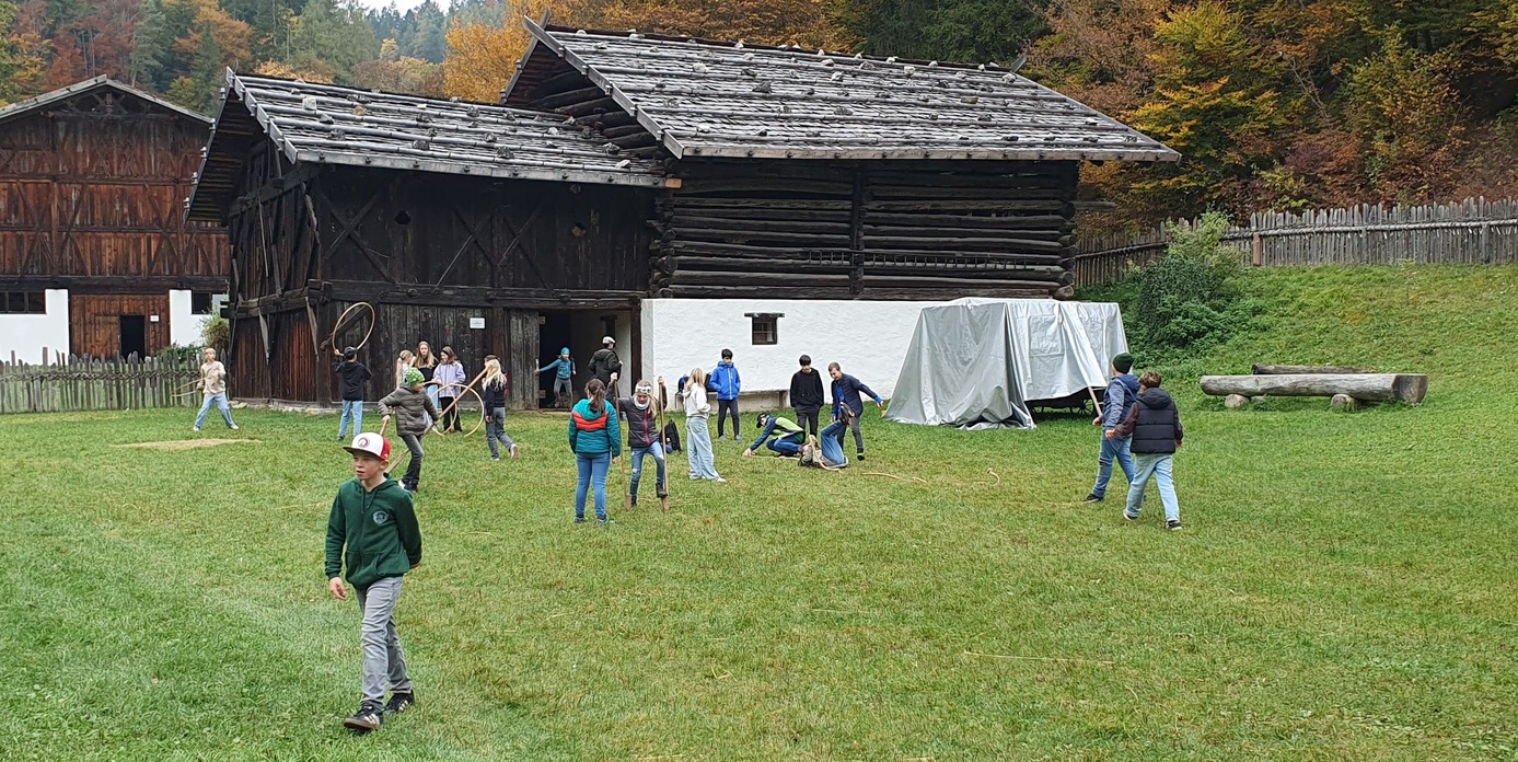 Zu Schulbeginn tauchte die 1. und 2. Klasse der Mittelschule Tragöß - St. Katharein im Zuge eines Besuchs des Freilichtmuseums Stübing in die Vergangenheit ein. Unter dem Motto „Dunkel war’s“ lernten die Schüler das Leben bei Kerzenschein und Windlicht kennen und machten große Augen, da „Licht“ nicht immer alltäglich war und nicht bei Bedarf aus der Steckdose kam. Spätestens beim Kerzenziehen wurde ihnen bewusst, dass „Licht haben“ in der Vergangenheit zuerst einmal Arbeit bedeutete, im Sinne von Kerzen herstellen. Glücklicherweise dauerte das Kerzenziehen nicht übertrieben lange, sodass noch ausreichend Zeit blieb, um einerseits Verstecken in einem fast komplett abgedunkelten alten Bauernhaus zu spielen oder auf der Wiese sich mit Tauziehen, Hula Hoop Reifen oder beim Schaukeln auszutoben. Alles in allem ein gelungener Ausflug in die heimatliche Vergangenheit.