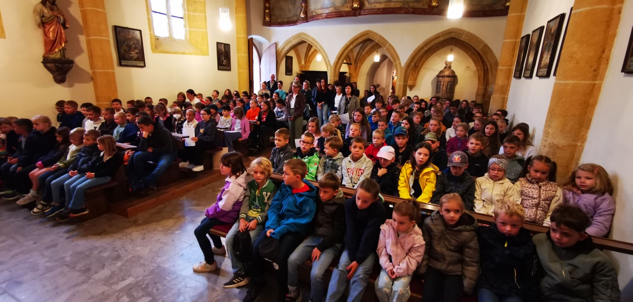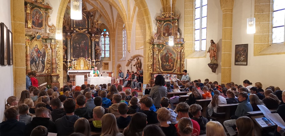 Nach langer, langer Zeit fand in der Kirche in St. Katharein wieder ein gemeinsamer Schulgottesdienst für alle 169 Schüler der Volks- und Mittelschule Tragöß - St. Katharein statt. Religionslehrerin Doris Tramposch organisierte in bewährter Art und Weise gemeinsam mit Vikar Henryk Blida einen kurzweiligen Wortgottesdienst, der von schwungvollen Liedern, aussagekräftigen Fürbitten und lehrreichen Texten aus der Bibel geprägt war. Die Liebe und der Friede waren die zentralen Themen der Botschaft von Vikar Blida an die versammelte Schulgemeinschaft, die Direktor Heimrath in seiner Ansprache um die Themen Klassengemeinschaft und Sicherheit ergänzte. Er wünschte allen Schulpartnern ein erfolgreiches Schuljahr 2025/26 und verlieh seiner Hoffnung Ausdruck, dass sich alle im neu sanierten Schulzentrum Tragöß - St. Katharein wohl fühlen und jeder eine angenehme Lehr- und Lernatmosphäre vorfindet.