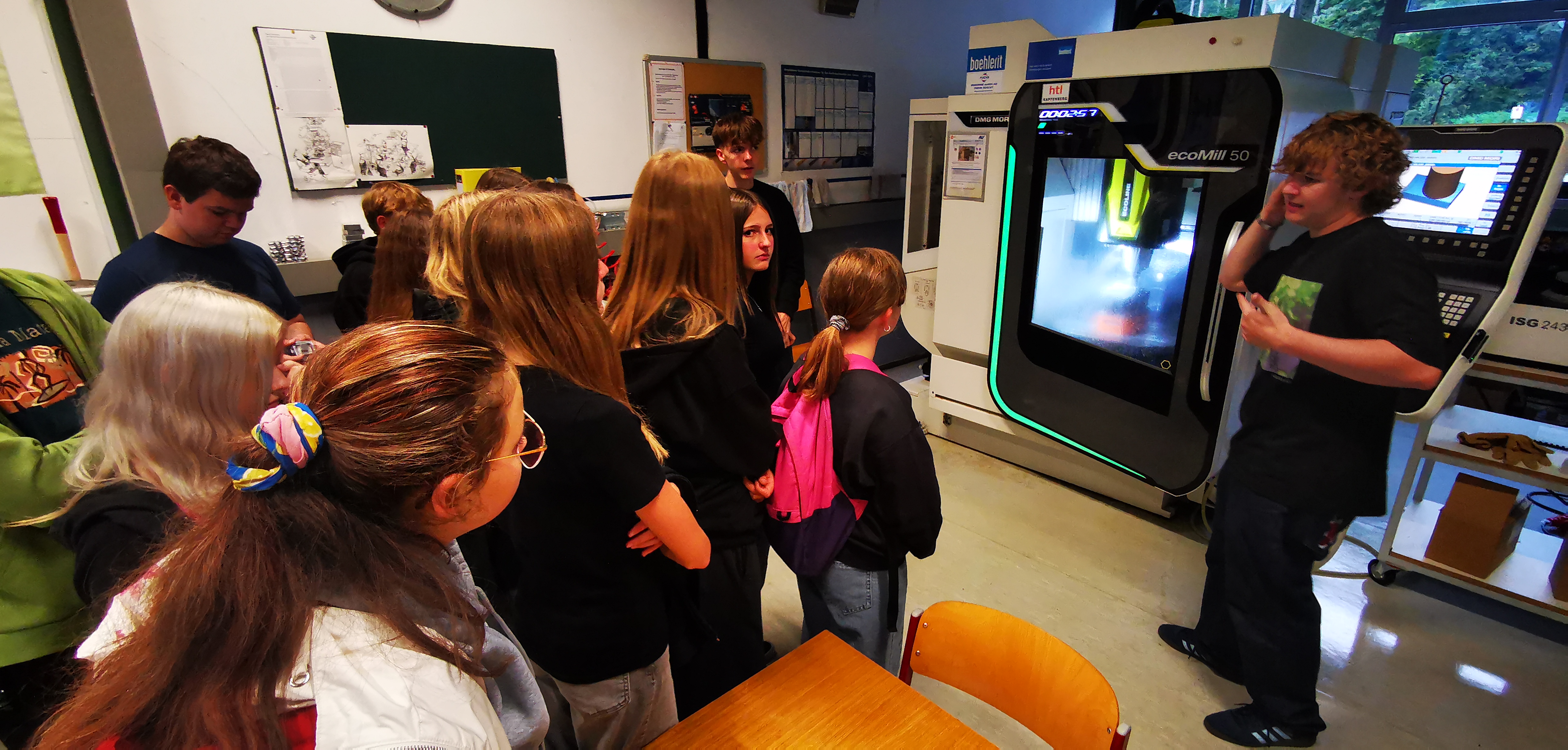Auch das CNC-Fräsen wurde den Besucherinnen erklärt und live vorgestellt.