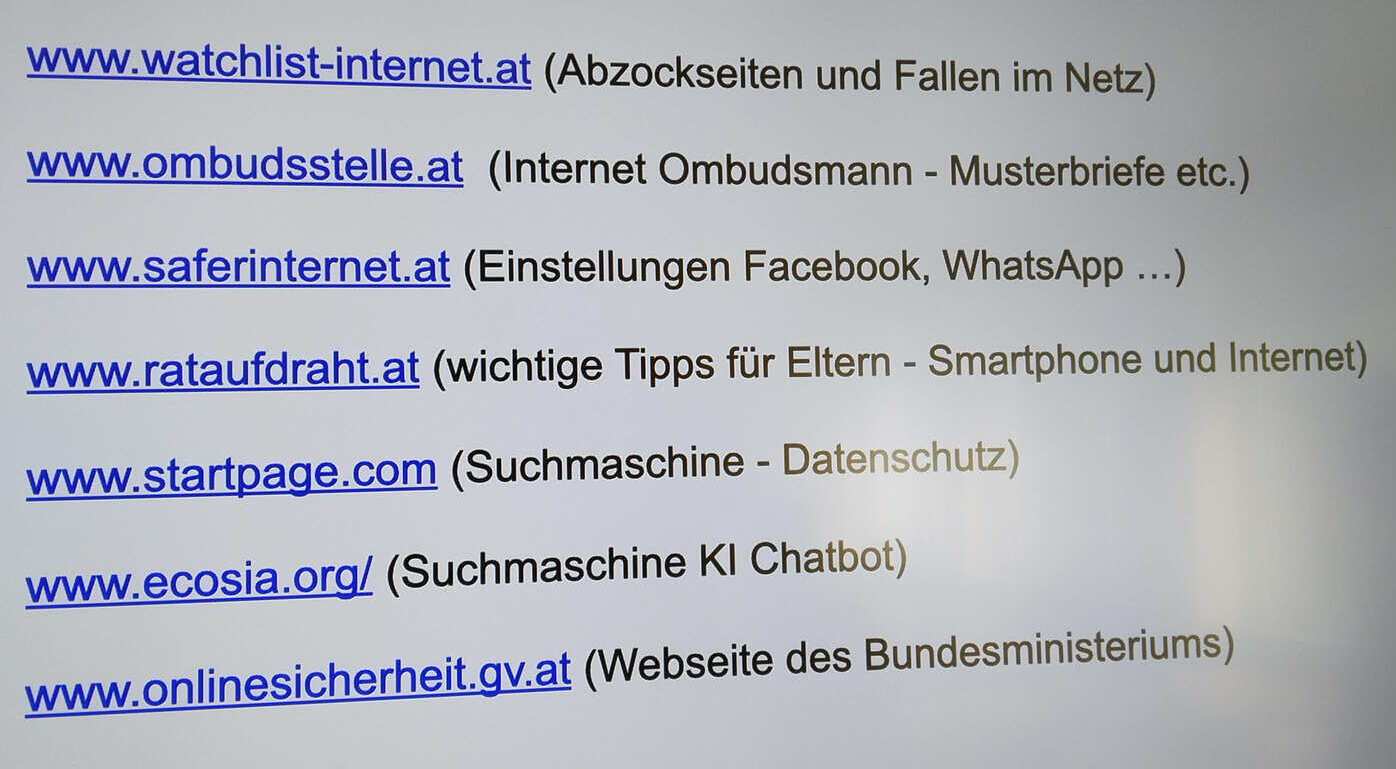Am 30.09. lud Herr Klaus Strassegger zu einem Elternvortrag und begrüßte dazu fast 40 interessierte Eltern und Erziehungsberechtigte. In dieser fast zweistündigen Informationsveranstaltung gab der Medienexperte seinen Zuhörern zahlreiche Tipps für einen sicheren Umgang mit digitalen Medien und Vorschläge, wie sie ihre Kinder gut bei deren Nutzung begleiten und unterstützen können. Besonderes Augenmerk legte der Profi auf die verantwortungsvolle Veröffentlichung von Nachrichten und Bildern im Internet sowie die Sensibilisierung und Bekämpfung von Cyber-Mobbing in Schulen. Im Anschluss teilte Klaus Strassegger noch wichtige Links, die wertvolle Informationen und Hilfe bei unterschiedlichsten Themen anbieten. Siehe Foto!